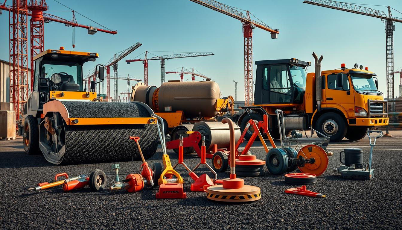 Sabia que as vibroacabadoras podem pavimentar até 450 toneladas por hora? Isso mostra o quão eficientes são essas máquinas em obras de infraestrutura. Neste guia, vamos ver os principais equipamentos de pavimentação. Como rolos compactadores, vibroacabadoras e caminhões, essenciais para a qualidade e longevidade do asfalto.