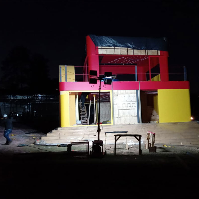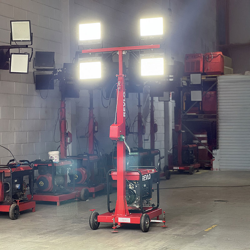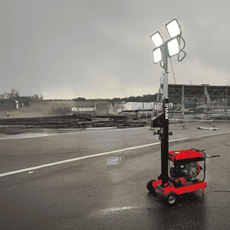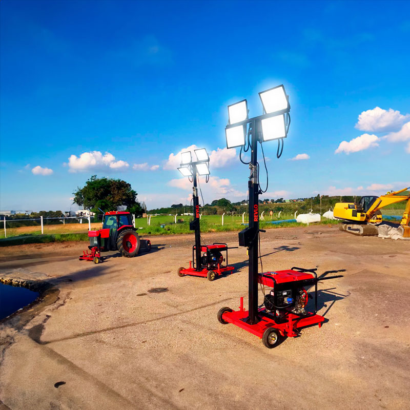 Uma torre de iluminação portátil, de fácil mobilidade que é capaz de fornecer até 2400 watts de potência.